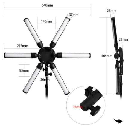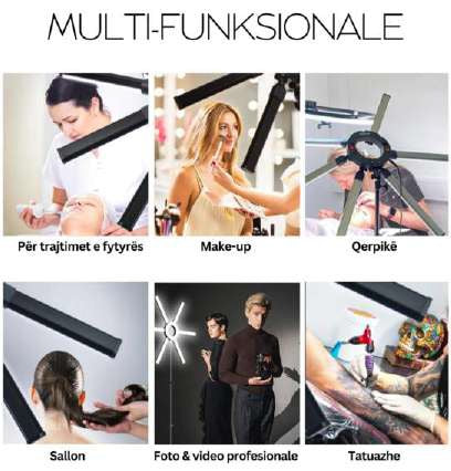 El Aro De Luz Estrella HD-60X es tu solución de iluminación profesional para estudios de fotografía, video y contenido digital. Con 60W de potencia distribuidos en 6 barras LED que se despliegan en forma de estrella, crea una iluminación envolvente que elimina sombras faciales y proporciona un acabado suave y uniforme. Su diseño único genera el característico brillo de estrella en los ojos, potenciando la calidad de retratos y primeros planos. El CRI de 97 garantiza reproducción fiel de colores, esencial para trabajos de maquillaje, tatuajes y fotografía de moda donde la precisión cromática es crítica. Control bicolor de 3200K a 5600K permite adaptarse a diferentes condiciones de iluminación natural o artificial. Atenuación regulable del 0% al 100% ofrece flexibilidad total. Incluye estuche de transporte, trípode, soporte para celular y adaptador universal, proporcionando un kit completo para profesionales exigentes.