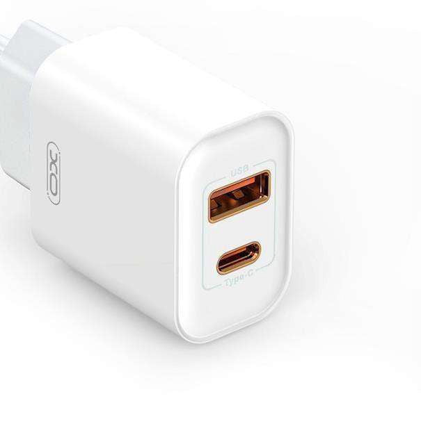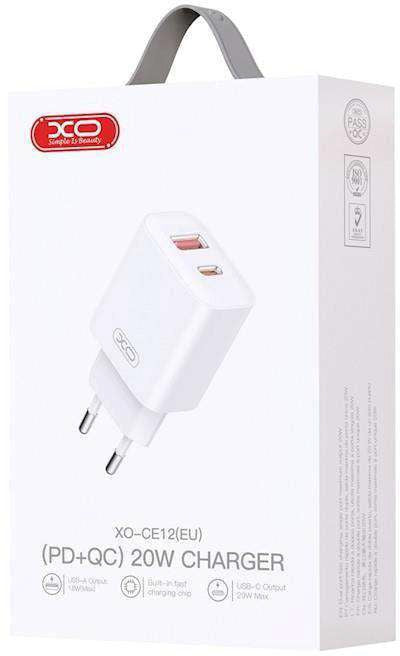 Cargador de pared XO CE12 de 20W con tecnología Power Delivery (PD) para carga rápida. Equipado con puerto USB-C de salida, permite cargar dispositivos modernos a máxima velocidad. El paquete incluye el cargador y cable USB-C a USB-C de 1 metro. Ideal para smartphones, tablets y otros dispositivos compatibles que requieran carga eficiente y segura. Diseño compacto y portátil para uso en casa u oficina.