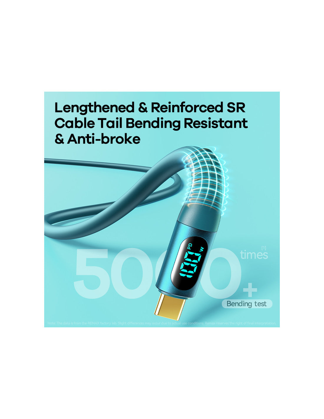 El Cable Remax RC032 Tipo C a Tipo C ofrece carga rápida de hasta 100W y transmisión de datos a 480 Mbps, ideal para dispositivos modernos. Fabricado con cable elástico de TPE y carcasa de aluminio, garantiza durabilidad y confort al uso. Cuenta con pantalla digital que muestra la potencia en tiempo real para un control preciso. Su diseño engrosado y doble refuerzo en la cola prolongan su vida útil, asegurando rendimiento eficiente en carga y transferencia. Perfecto para quienes buscan calidad y tecnología avanzada en un solo cable.