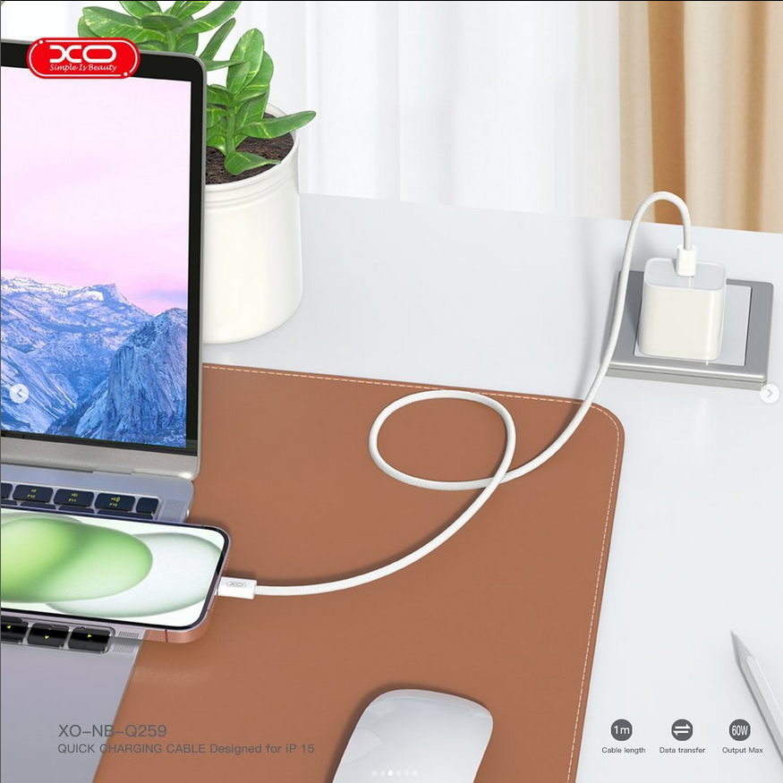 El cable XO Q259 USB Tipo-C a Tipo-C de 1 metro combina carga rápida y transferencia segura de datos, soportando hasta 60W para dispositivos como iPad, iPhone y otros con conector USB-C. Su diseño robusto garantiza alta resistencia al desgaste y daños, ofreciendo uso confiable a largo plazo. Incluye caja de marca e instrucciones para facilitar su uso. Ideal para quienes buscan eficiencia y durabilidad en un solo cable.