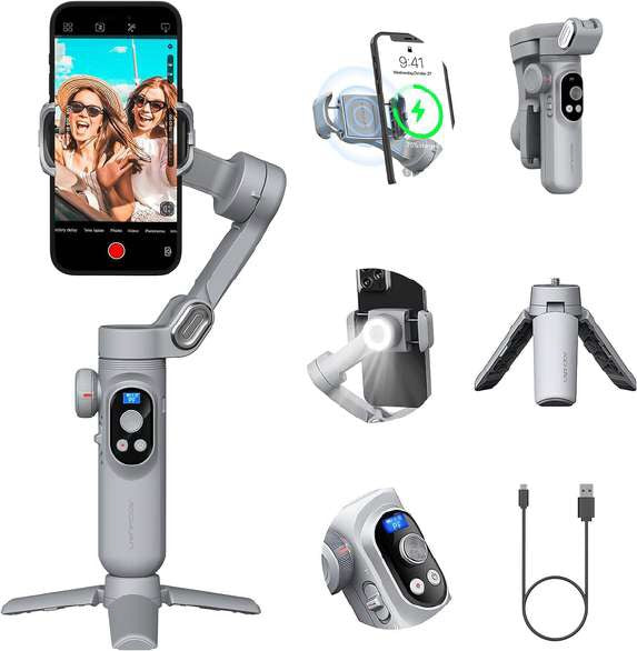 El Estabilizador Aochuan Smart X PRO es un gimbal de 3 ejes profesional diseñado para creadores de contenido que demandan estabilidad cinematográfica. Su sistema de estabilización pan, tilt y roll elimina vibraciones, garantizando grabaciones fluidas incluso en movimiento. La pantalla OLED integrada proporciona información en tiempo real sobre modo de disparo, batería y conexión Bluetooth. Destaca por su rueda de enfoque y control de zoom independiente, permitiendo ajustes precisos durante la grabación. La luz de relleno ajustable en 3 niveles compensa iluminación deficiente sin equipamiento adicional. Su diseño plegable facilita la portabilidad, mientras que la carga inalámbrica del dispositivo móvil y batería de 3200 mAh aseguran sesiones de grabación prolongadas sin interrupciones.