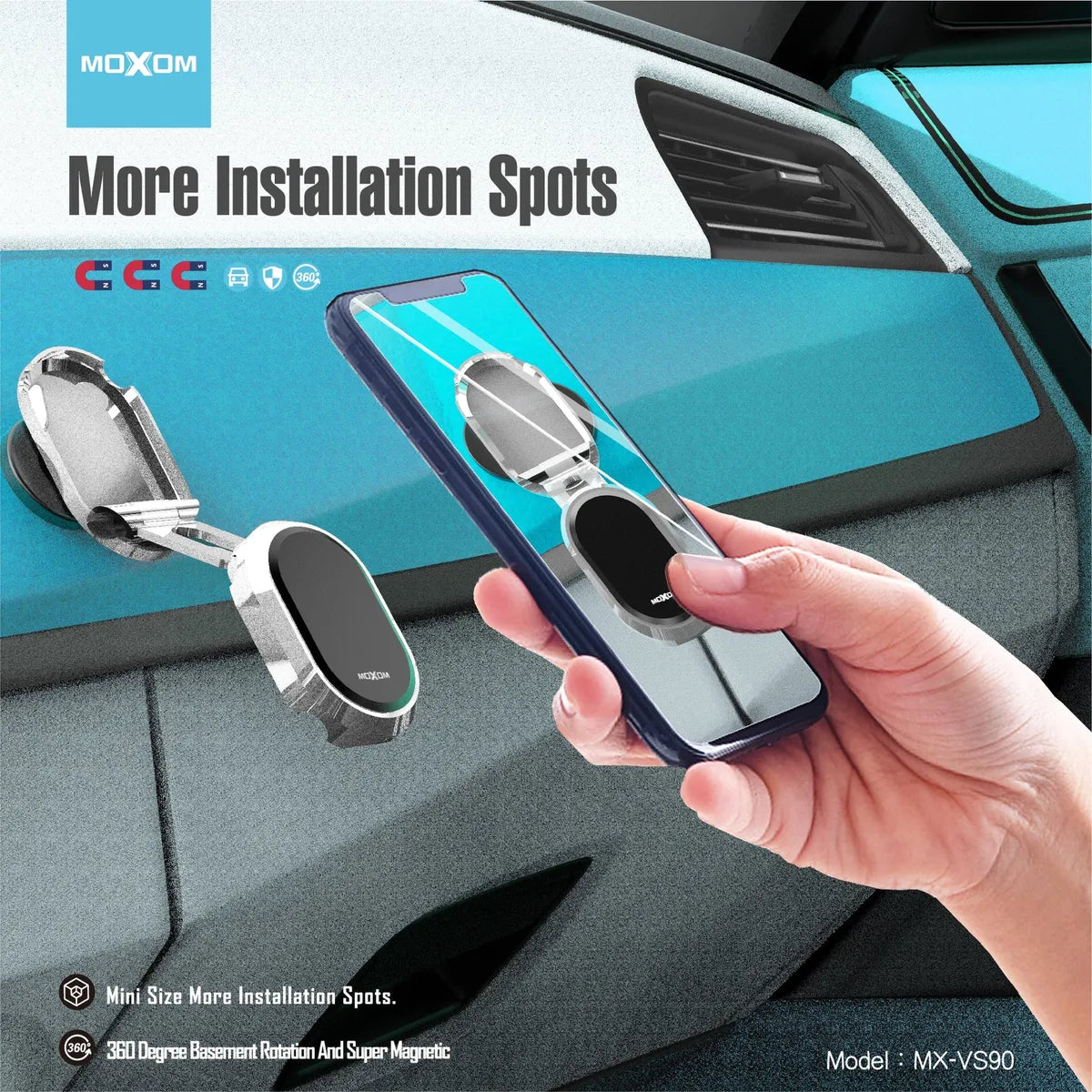 El Holder Magnético Moxom VS90 ofrece una solución segura y práctica para mantener tu dispositivo móvil al alcance mientras conduces. Su base adhesiva se fija firmemente al tablero, asegurando estabilidad sin dañarlo. Gracias a su rotación de 360 grados, puedes ajustar el ángulo de visión para mayor comodidad y seguridad. El potente sistema magnético garantiza que tu dispositivo permanezca fijo, facilitando un acceso rápido y estable en todo momento. Ideal para quienes buscan funcionalidad y diseño en un soporte para auto.