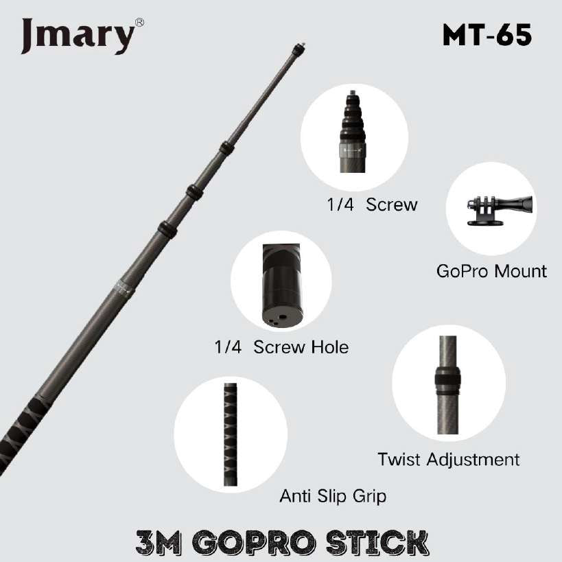 El Jmary MT-65 es un monopié de extensión ultra larga fabricado en fibra de carbono que alcanza hasta 3 metros de altura. Con 5 secciones ajustables, ofrece la versatilidad perfecta para capturar tomas aéreas con cámaras de acción, smartphones y equipos ligeros. Su construcción en fibra de carbono garantiza estabilidad sin sacrificar portabilidad, ideal para fotógrafos y creadores que buscan perspectivas elevadas y efectos de visión de dron. Perfecto para vlogs, fotografía de viajes y contenido creativo desde ángulos imposibles.